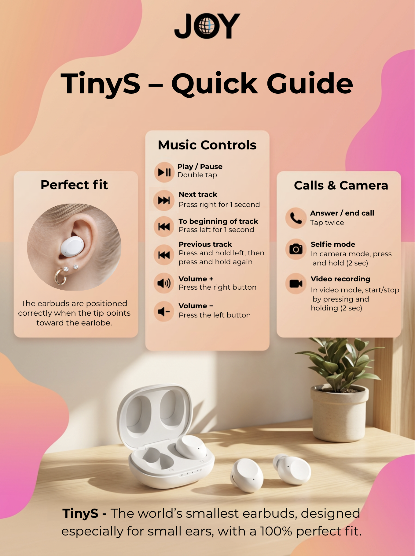 Enjoy your listening experience with JOY Earbuds, designed to bring comfort, great sound, and a joyful audio experience. 🎧